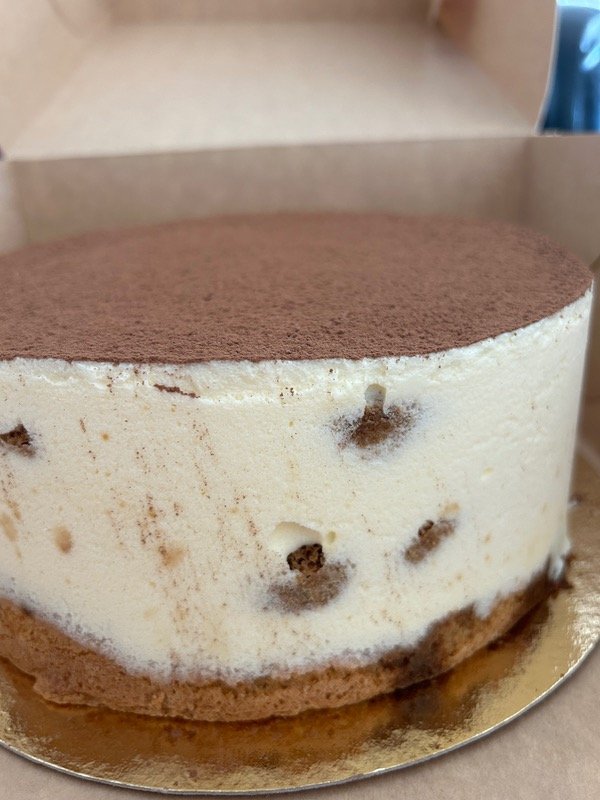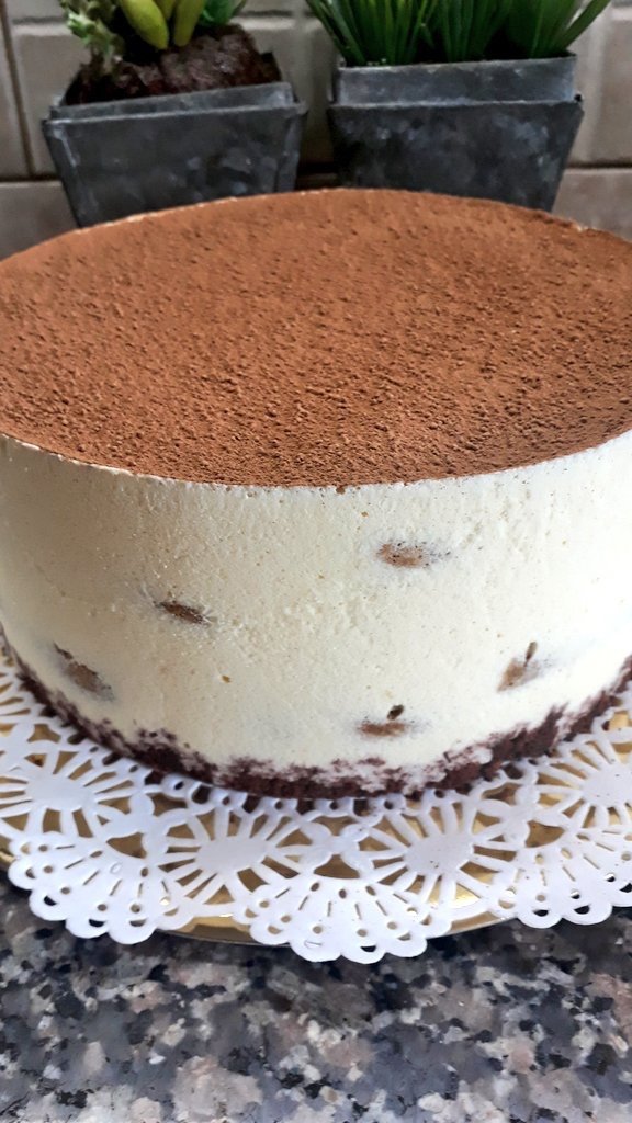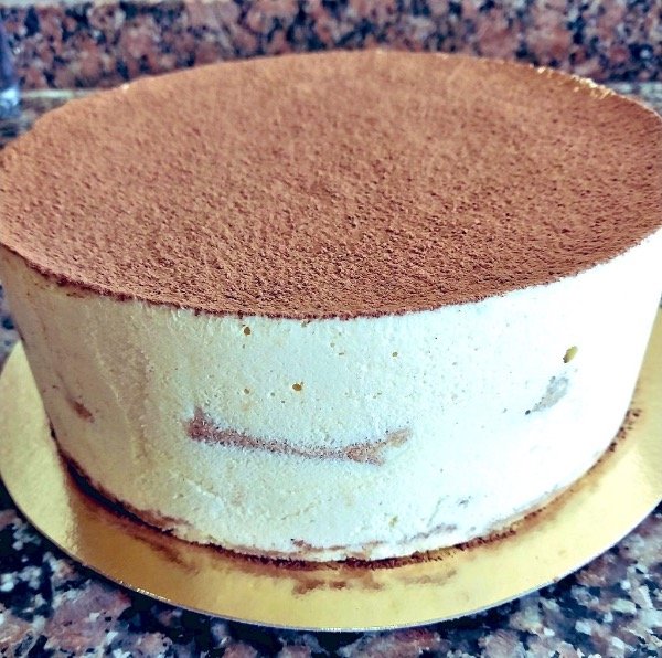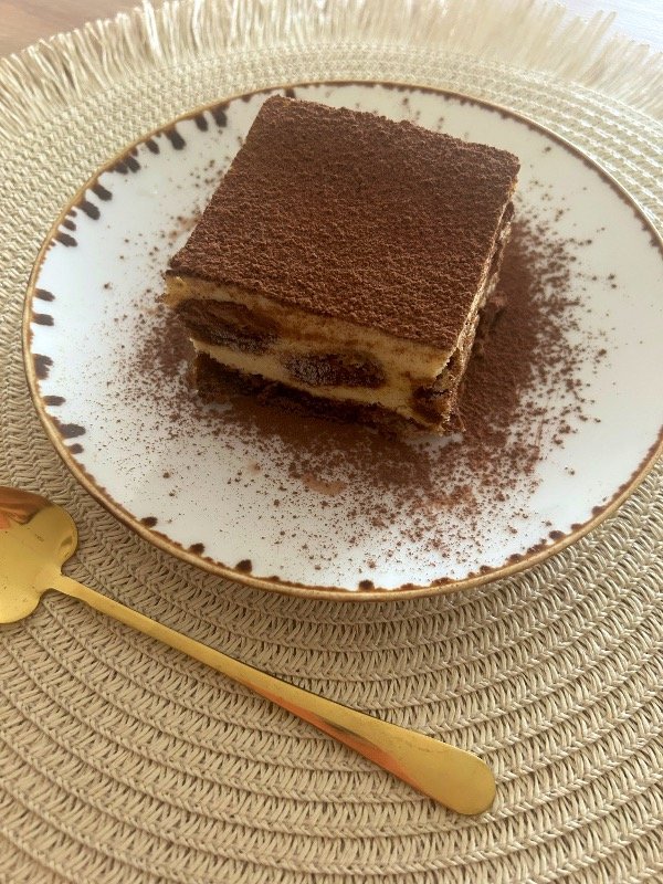 Vainillas embebidas en licor de café, con crema Mascarpone y cobertura de cacao amargo.